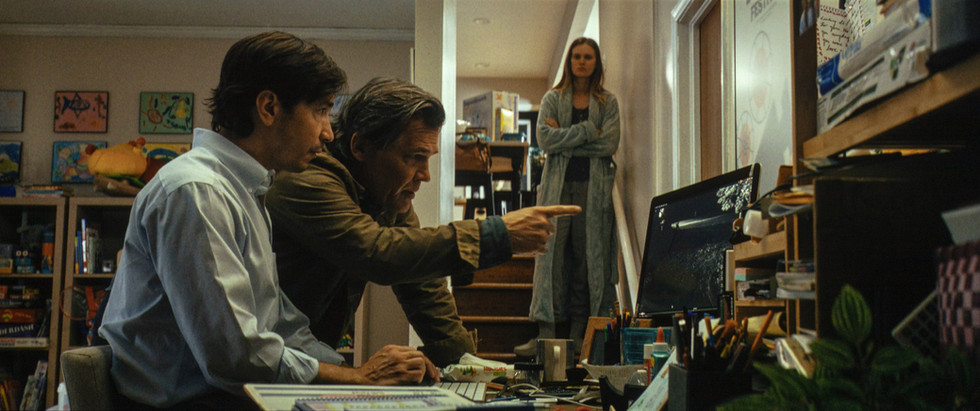 (1) Archer (Josh Brolin) grieves the absence of his son. (2) Ed (Toby Huss), the town police chief, and also Paul's father-in-law. (3) Archer and another father view the security camera footage of their child running from the house. (4) Something has happened to Marcus. (5&6) Paul confronts a local junkie named James (Austin Abrams). (7) James sells stolen goods for cash at a local pawnshop.