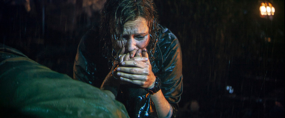 (1) Paleobiologist Dr. Emma Russell (Vera Farmiga) escapes Godzilla's first rampage with her daughter, Madison. (2 & 3) Five years later at a secret Monarch lab, Emma and Madison (Millie Bobby Brown) watch Mothra hatch from an egg. (4) Alan Jonah (Charles Dance) leader of an ecoterrorist group, kidnaps Emma and Madison.