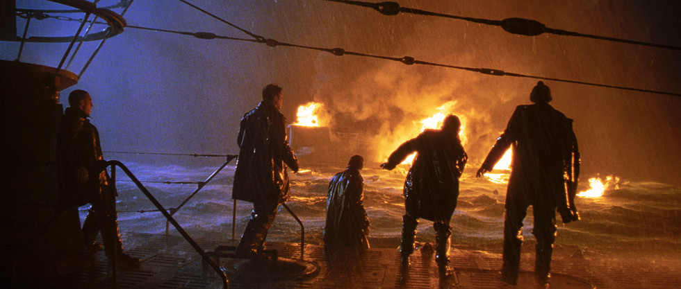 (1&2) U-571 Capt.-Lt. Gunther Wassner (Thomas Kretschmann) and his crew hit an Allied merchant ship in the middle of the Atlantic Ocean. (3&4) The U-571 crew prepares for Allied depth chargers. (5&6) One of the charges caused a fire in the engine room and Capt. Wassner learns the fate of his mechanics.