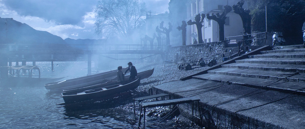 (1) “House of Gucci” opens in 1995, as Maurizio Gucci played by Adam Driver, has a coffee at a Milan, Italy street cafe. (2) Flashback: 1970s and Patrizia Reggiani meets Maurizio Gucci at a Milan nightclub. (3&4) Now dating, they go for a boat ride.