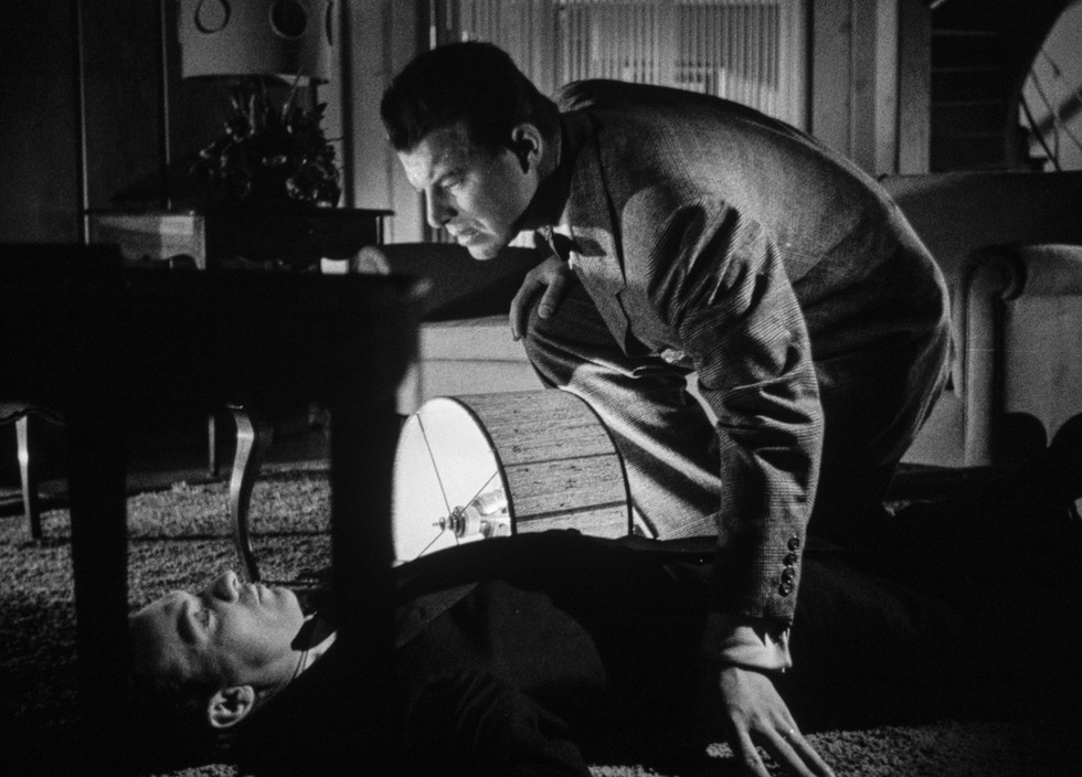 Three gunshots ring out 10 seconds in. After a quick cut from outside a beach house to an interior living room, three more blasts follow – two hitting a mirror behind a man in a black suit and bow tie. He bellies over as director Michael Curtiz’s (“Casablanca,” “The Adventures of Robin Hood,” “White Christmas”) camera follows him to the floor; a flickering fireplace lights the room. The gun is thrown toward the dying man as he breathes his last word, “Mildred.”