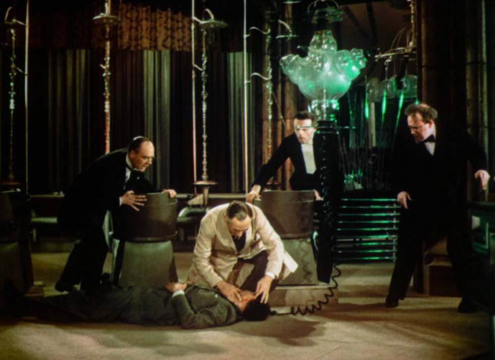 Michael Curtiz, who went on to direct classics “Captain Blood,” “Casablanca,” “Mildred Pierce,” “White Christmas,” and “Yankee Doodle Dandy,” pulled out all the stops for this 1932 curiosity. Right after “Doctor X,” Curtiz made the more well-known “Mystery of the Wax Museum,” but “X” was the first horror feature to be filmed in Technicolor’s two-strip process. Colors red and green, and their various iterations, give the film a singular style and mood; it's especially effective in the surreal laboratory scenes.