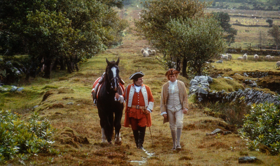 (1) Barry is banished, and bids Nora goodbye. (2) He’s held up by highwaymen and loses everything. (3-5) Desperate, he enlists in the British army and reunites with Grogan, who tells him Quin survived the duel, but Nora’s family deceived Barry so he’d leave.