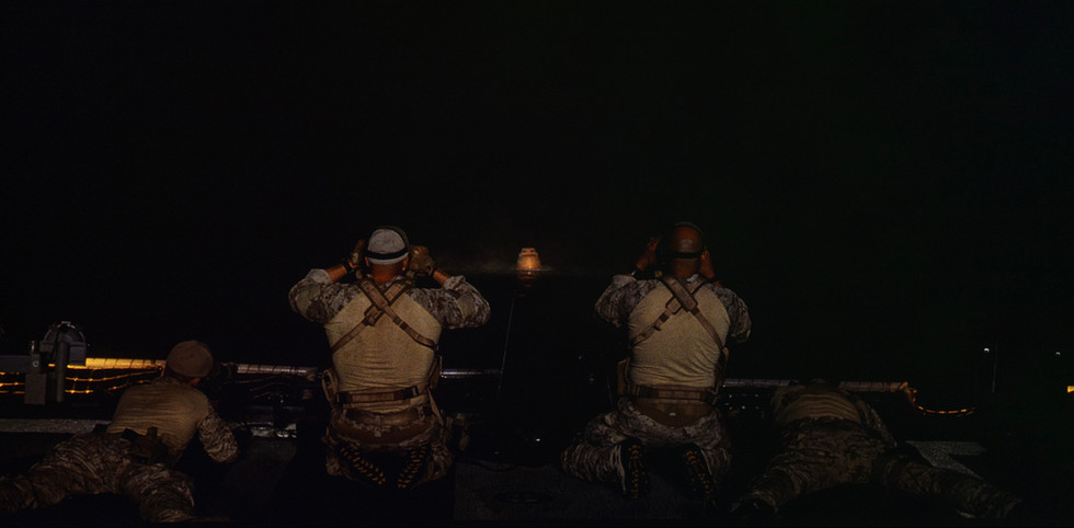 (1) Maersk Alabama heads south along the African coastline. (2) Phillips checks over emails from his ship office. (3-5) Two 12-foot Somali pirate skiffs follow the Alabama, but eventually call off the attack. The next day one skiff returns with two outboard engines and four Somalis use AK-47s during their takeover of the Alabama. (6&7) Barkhad Abdi as Muse, the leader of the young pirates, received an Oscar nomination for Best Supporting Actor.