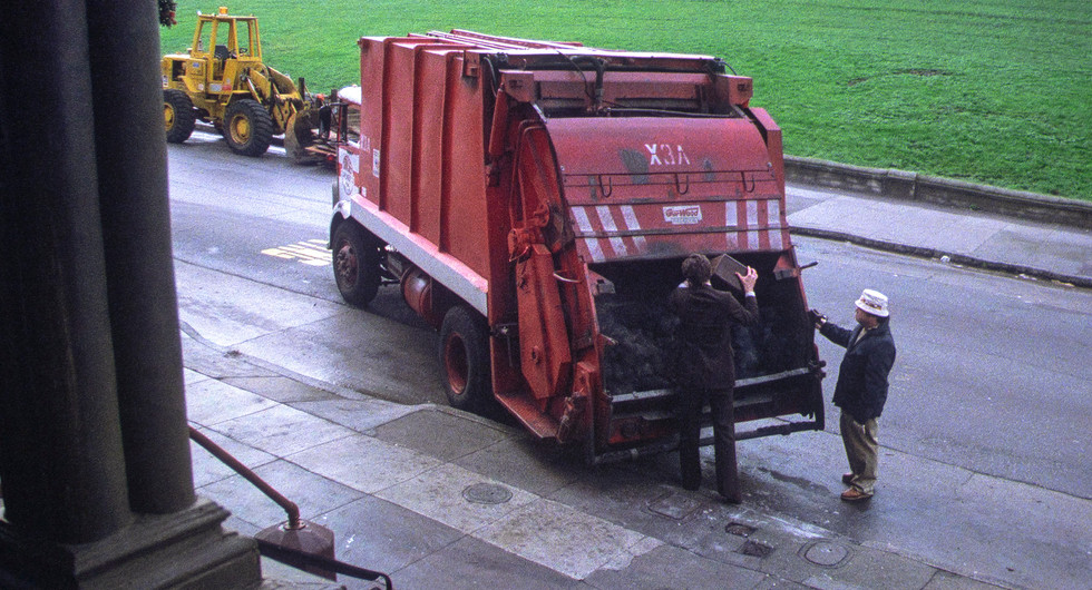 (1) Elizabeth Driscoll’s boyfriend Dr. Geoffrey Howell (Art Hindle), wakes up as a pod person. (2&3) Geoffrey throws the remains of his former body into a garbage truck, as Elizabeth watches from their bedroom window. (4) She rushes to Matthew’s apartment to give him the news about Geoffrey.