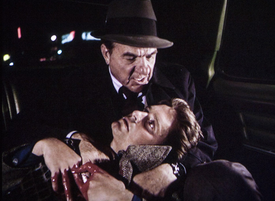 Michael Douglas as Inspector Steve Keller and Karl Malden as homicide Detective Lt. Mike Stone, examine a dead body during the series first episode.