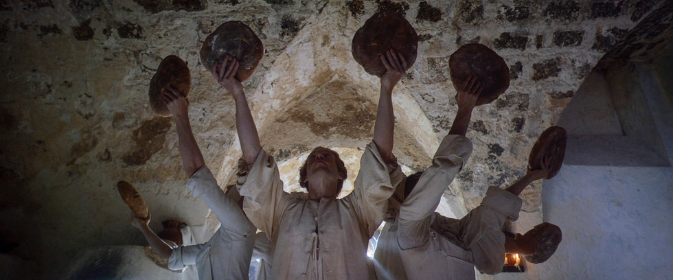 (1) Cyrano volunteers to write intelligent love letters for Christian, saying, “I will make you eloquent, while you make me handsome.” (2&3) The Castello Maniace, a citadel and castle in Syracuse, Sicily, was used for the cadet barracks, and the musical number “Someone to Say.” (4) Cyrano hands Christian the first of many letters, telling him he only needs to sign it. (5-7) The letter is slipped under Roxanne’s door and she begins singing “Every Letter,” as Christian and Cyrano join in.