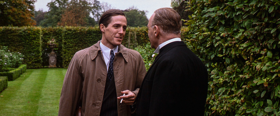 (1) Hugh Grant plays Reginald Cardinal - Lord Darlington’s godson. (2&3) Lord Darlington hosts an International conference with representatives from France, Germany, and the United States. (4) Miss Keaton gives Stevens the news about his father. (5&6) The German baroness (Brigitte Kahn) sings a Franz Schubert song on the final night of the conference.