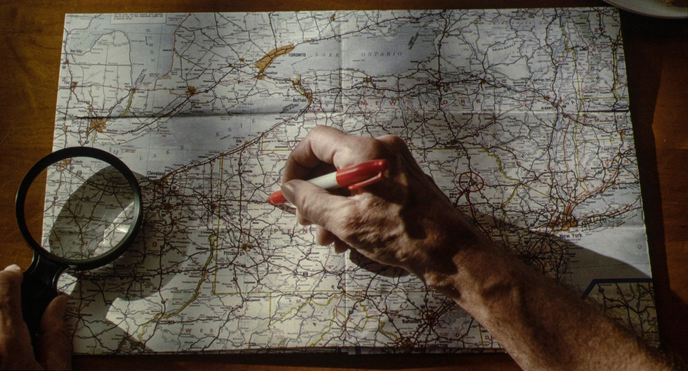 (1) Alone in a nursing home and confined to a wheelchair, Sheeran recounts his story. (2) It begins in 1975 as Sheeran maps out a trip to Detroit for the wedding of a friend’s daughter. (3&4) Sheeran and Russell Bufalino (Joe Pesci), his mentor and a powerful mob leader, pack the car and begin the long drive with their wives.