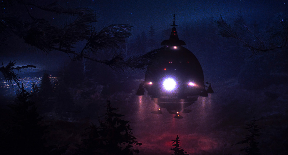 (1-3) An alien spaceship lands in the forest above a South California suburb. An extra-terrestrial explores as federal agents arrive on the scene and the creature’s chest lights up. (4-7) The little guy is left behind and decides to head into the San Fernando Valley.