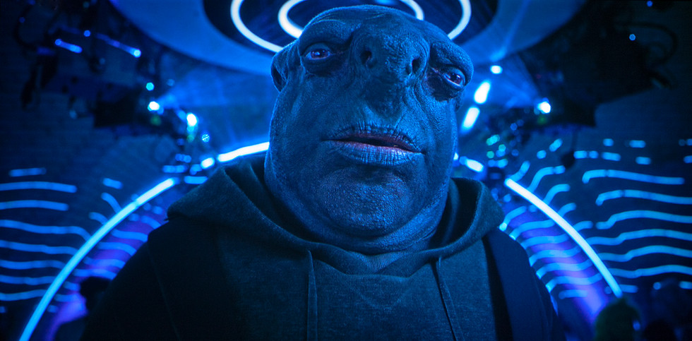 (1) Pawny, a pocket-sized alien wiseacre (Kumail Nanjiani) (2 & 3) Agent High T and two alien MiB agents welcome new recruit Agent M to the London base. (3 & 4) Agent H and Agent M meet Vungus the Ugly (Kayvan Novak), a member of an alien royal family at an alien nightclub.