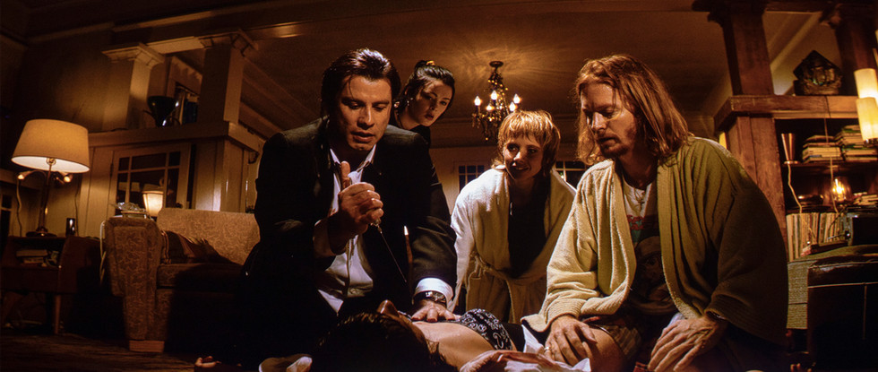John Travolta and Samuel L Jackson play hitmen Vincent Vega and Jules Winnfield in Quentin Tarantino’s 1990s crime classic.